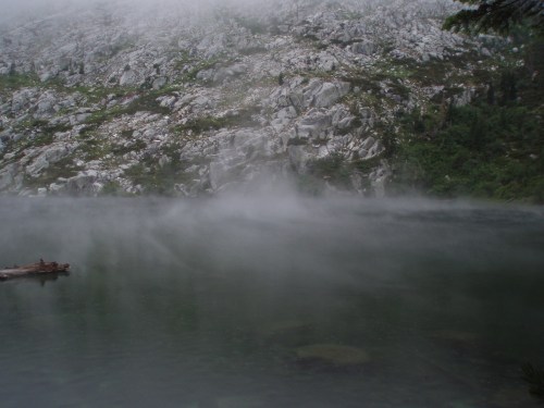 Early morning I noticed that a thermal wind was drawing all the mist from the lake into a funnel. Pretty amazing.